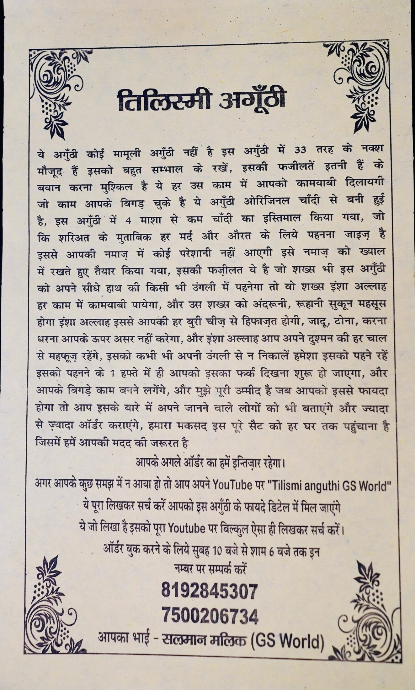 • नज़रबट्ट हटाने वाला खास 7 मुहर नक़्श